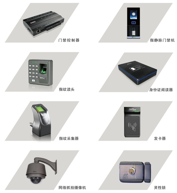 终端设备层 门禁控制器、指纹/指静脉读头、门禁电源、摄像头、四联按钮、灵性锁、声光报警器